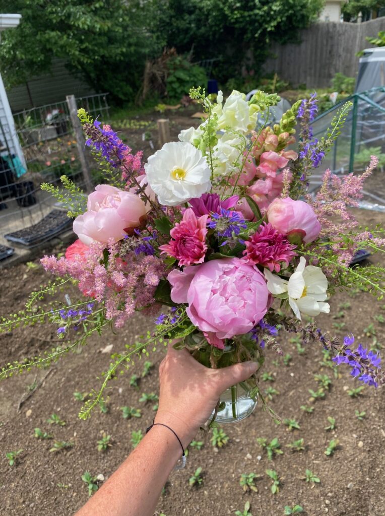 We cut fresh flowers right from our gardens and arrange them into our signature mason jar bouquets.
